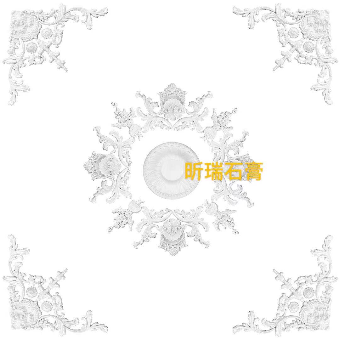 European-style dining room living room ceiling ceiling ceiling ceiling smallpox plaster line horn flower bull head flower shed roof four-corner gypsum carving