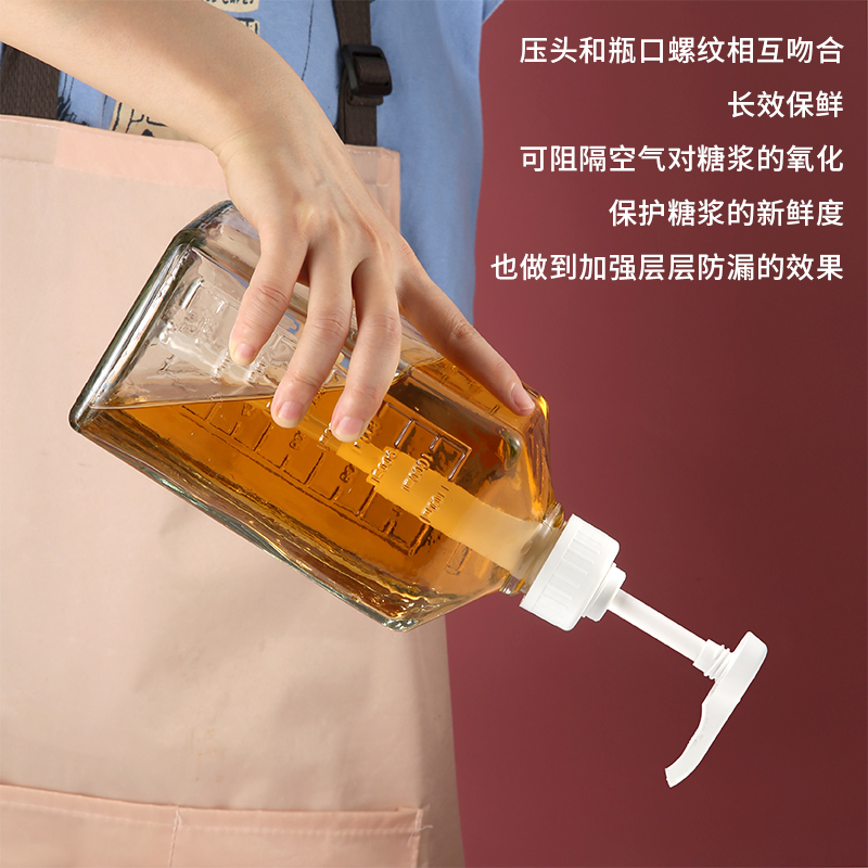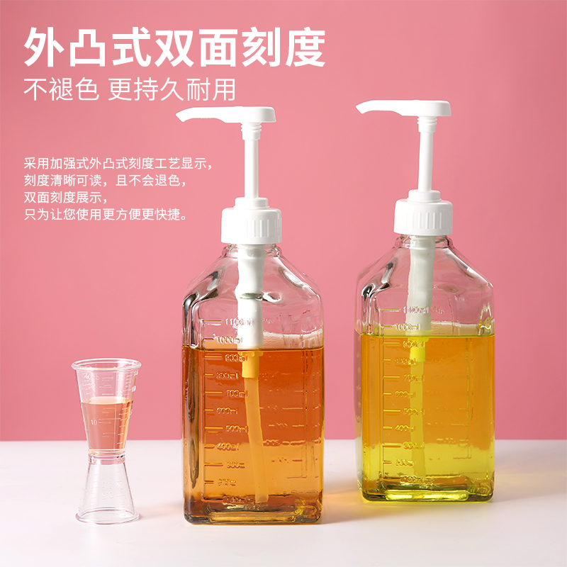 Hand Press Type Sugar Pressure Bottle Press Bottle Milk Tea Shop Quantitative Squeeze Bottle Fructose Syrup Squeeze Bottle Glass Sugar Press Bottle Rack