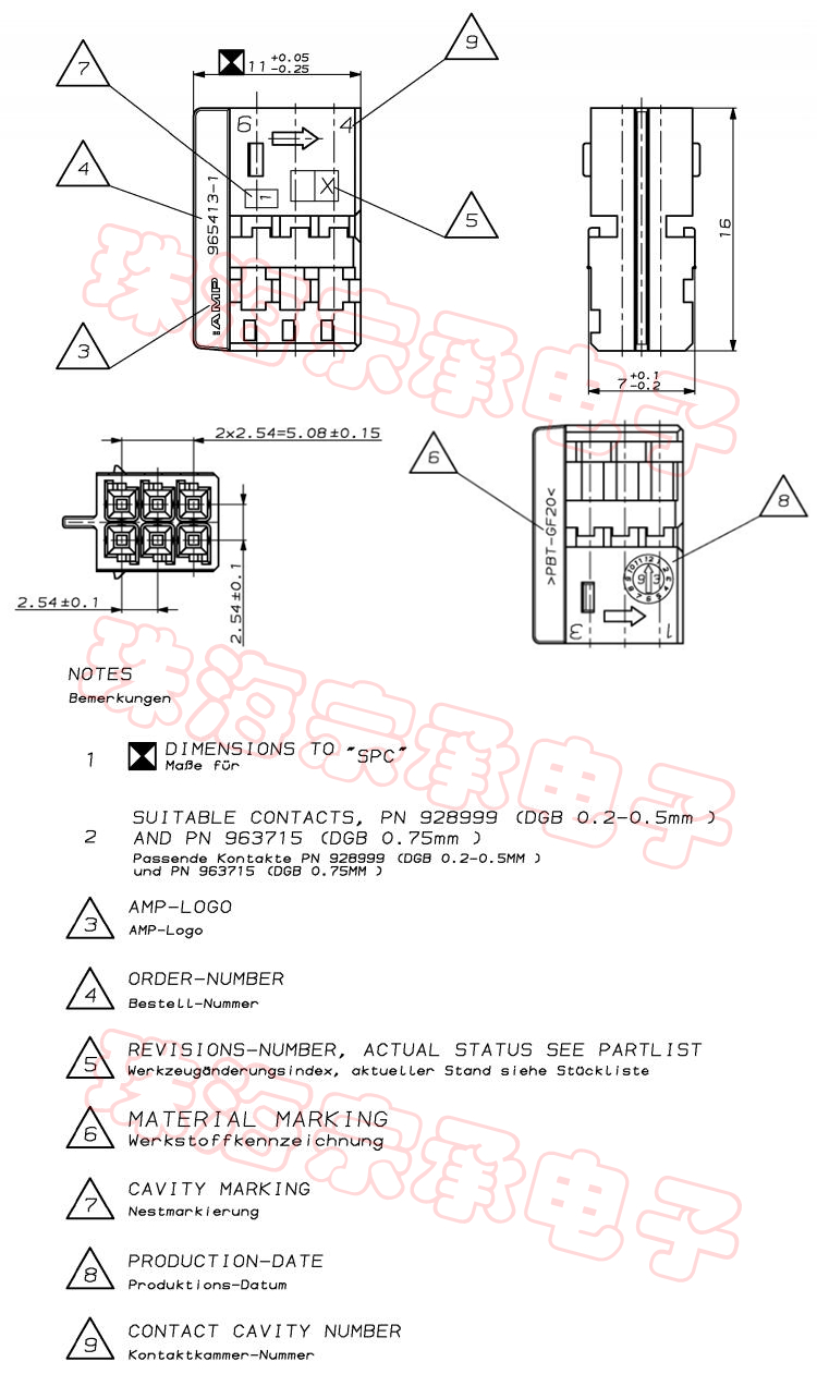 Imported German Tyco 6P car connector terminal 6-core TE 965413-1