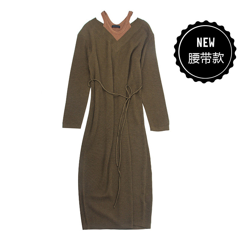 Casual maternity dress summer and autumn fake two-piece T-shirt loose V-neck medium and long version sweater sweater long sleeve dress tide