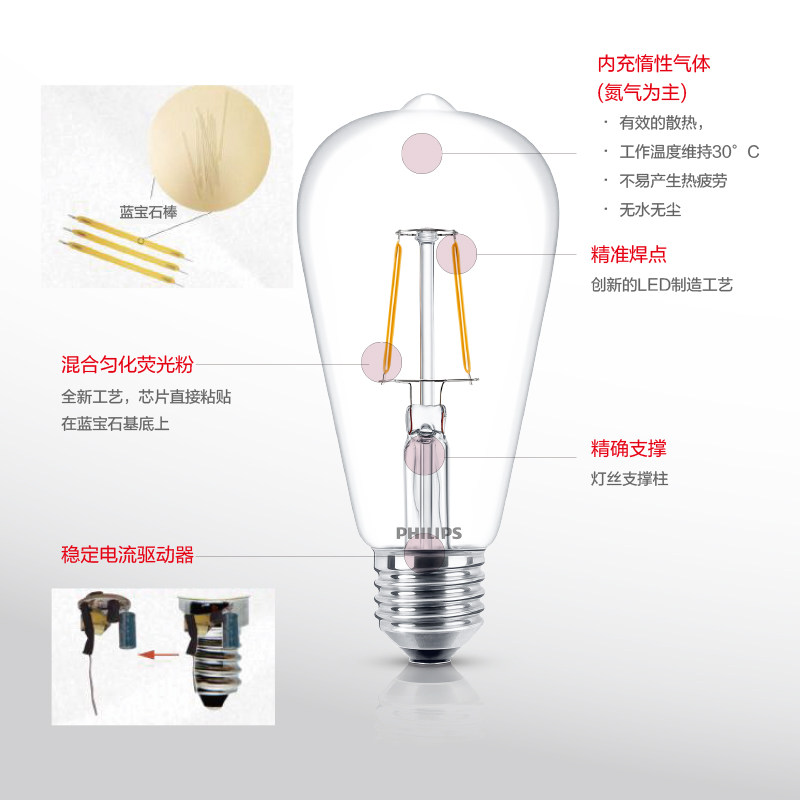 Philips LED retro Edison bulb E27E14 screw energy-saving lamp high-brightness tip bubble pull tail bubble hanging bell