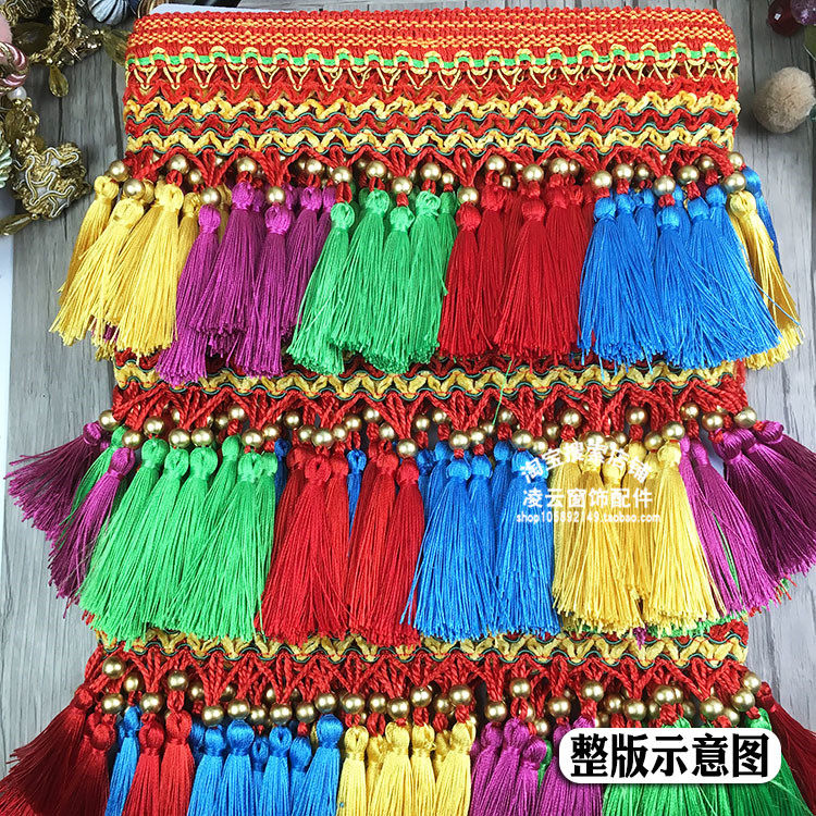Red color straightening five-color emerald green 12 meters straight three-color emerald green 12 meters five-color hexagonal beads 12 meters pom-pom big triangle one 2 2 meters pom-pom medium triangle one 2 2 meters gold flakes hanging ear red 12
