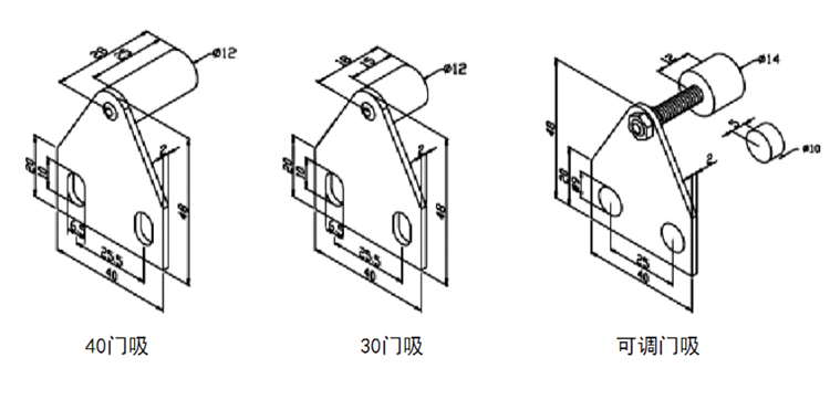 Adjustable door suction 30 fixed door suction 40 fixed door suction bending door suction