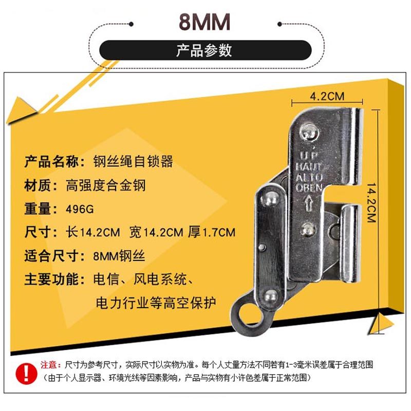 8MM wire rope self-locker anti-fall retarder climbing high altitude cable rope lock safety rope self-locking device climbing