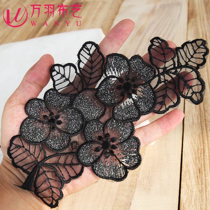 Silver flower black lace Silver flower white lace Black and white pair of large black rose flowers with rhinestones Black cloth paste Medium black lace flowers Large four-layer flowers-two black 6