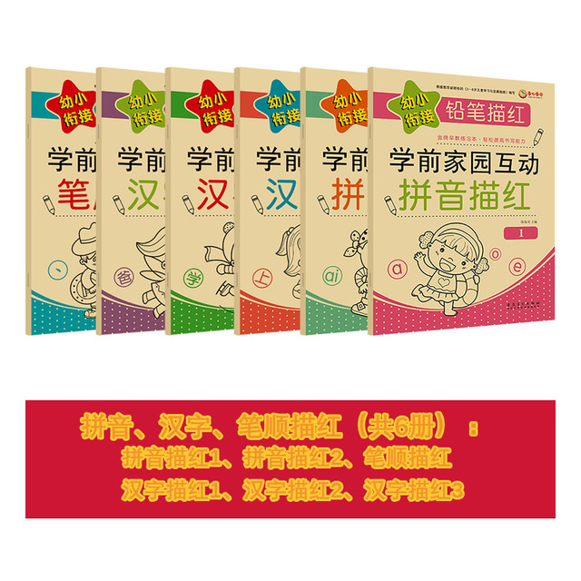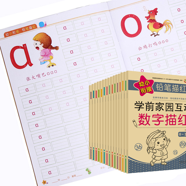 Children's kindergarten middle class large class young connection stroke stroke radical Chinese character enlightenment tracing red calligraphy copybook beginner number Chinese character addition and subtraction pinyin pencil tracing red exercise book