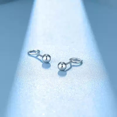 Zhou Liufu platinum ear needle female PT950 platinum ear needle hook round bead temperament simple niche earring gift