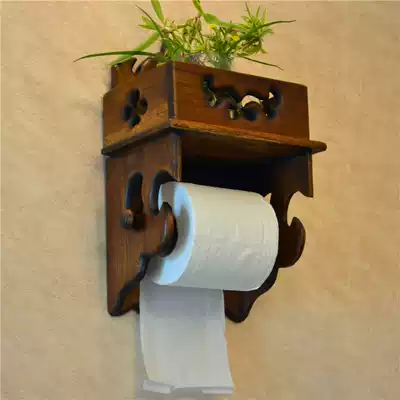 Multifunctional creative toilet paper towel holder cosmetic room roll toilet paper holder wooden Thai solid wood retro paper towel holder towel