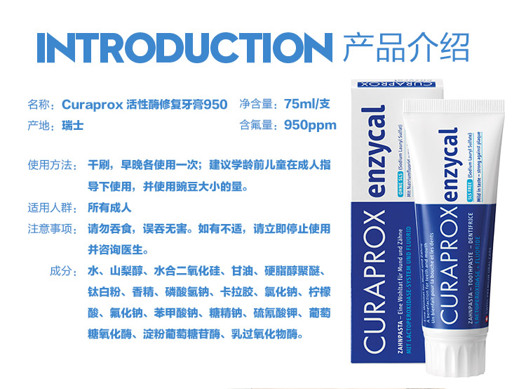 CURAPROX TOOTHPASTE SWISS IMPORTED 950PPM ACTIVE ENZYME REPAIR CURAPROX TOOTHPASTE contains fluorine cleaning professional