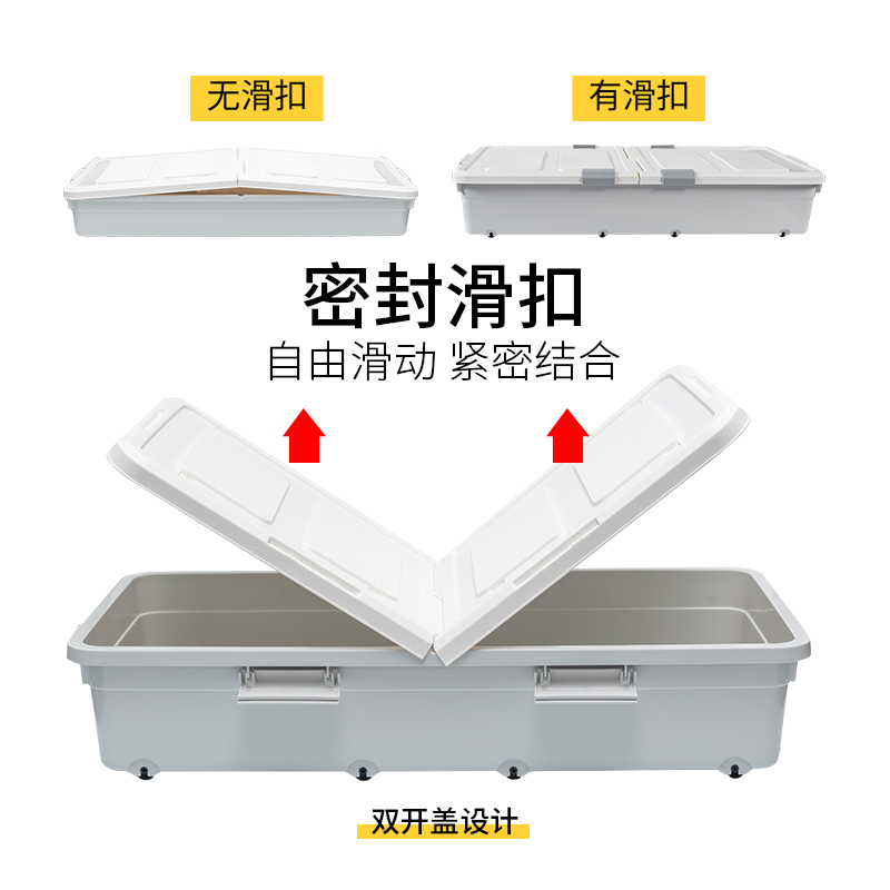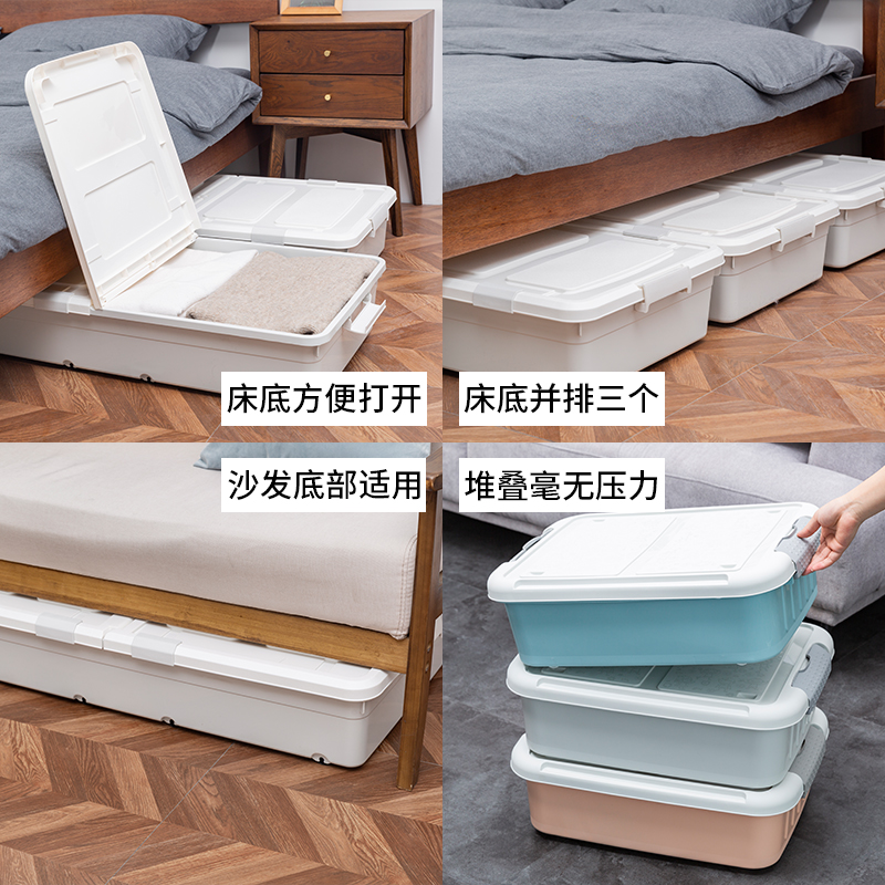 Bed bottom storage box with wheels Plastic flat king-size ultra-thin pulley storage box Under the bed clothes quilt finishing box