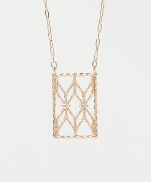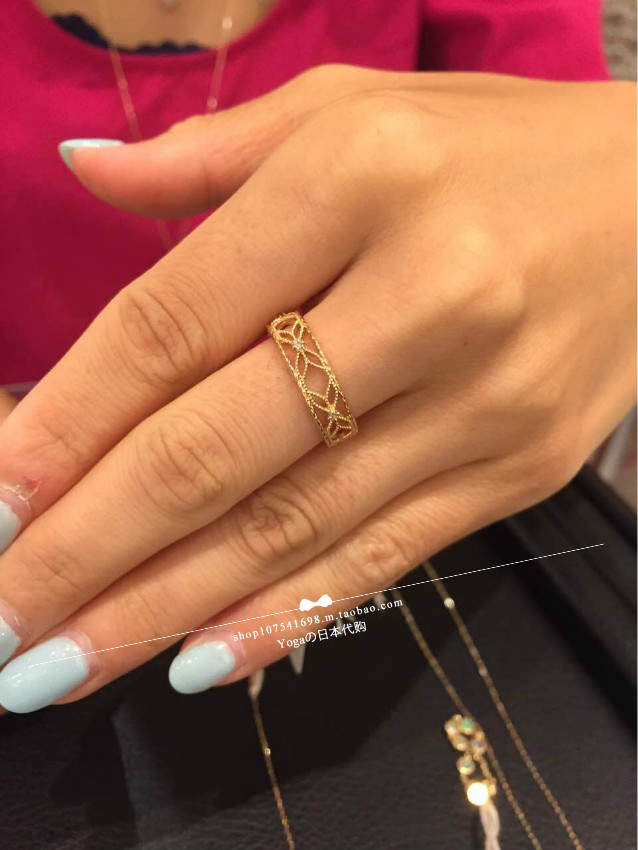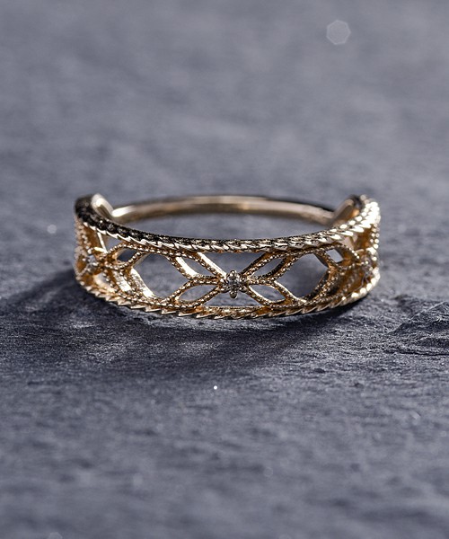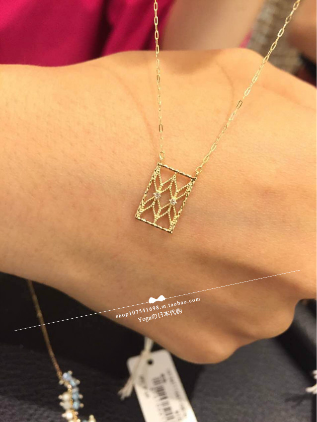 Japan Straight Send Agete 10k Gold Diamond Hollowed-out Patterned Necklace Ring