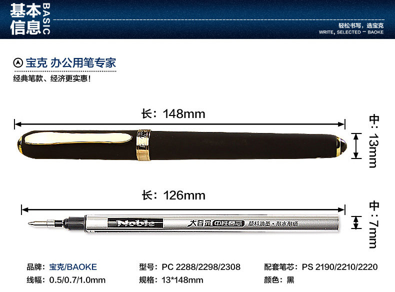 Baoke large capacity gel pen practice pen 0 5 0 7 1 0mm matte pen signature pen Office pen