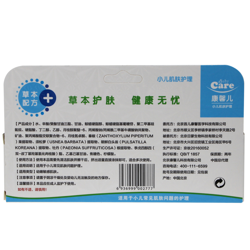 Kang Xiner herbal skin care cream Double cream Baby to prickly heat newborn products Red butt butt cream
