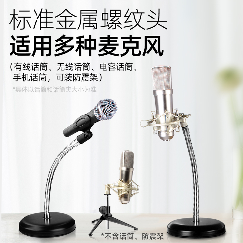 Gooseneck weighted disc base A gooseneck weighted disc base B fixed height disc base lifting folding three feet double microphone desktop disc base lifting height disc base fixed height disc base + mobile phone clip double microphone desktop disc base model + mobile phone clip Lift height disc base model + mobile phone clip Lift height disc base model + mobile phone clip Lift height disc base model + three-head microphone pole Lift height disc base model + five-headed microphone pole Desktop mobile phone live bracket Desktop mobile phone live bracket + Fill light + Bluetooth