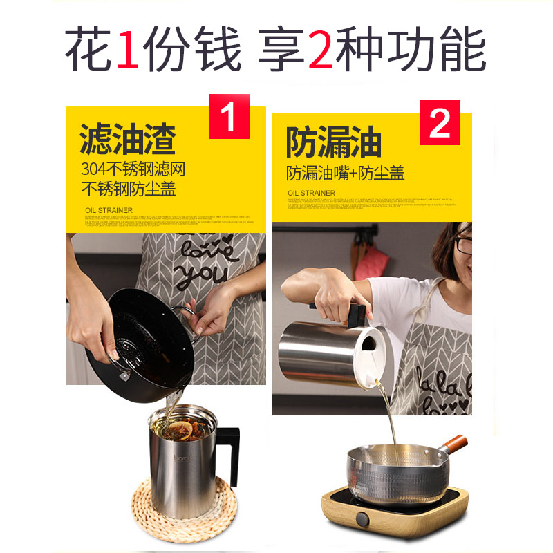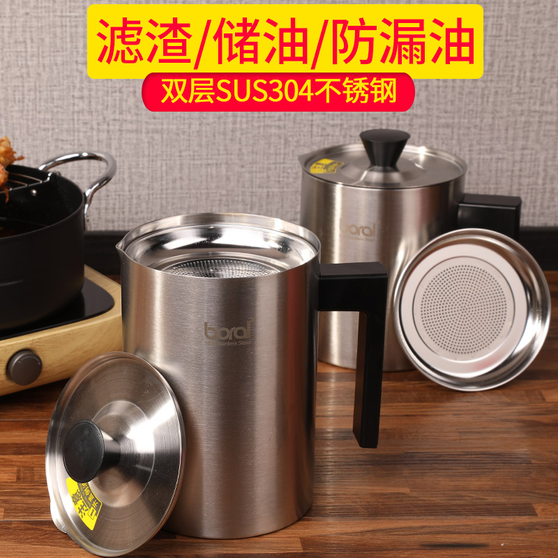 304 stainless steel oil pot filter oil residue storage tank Double anti-scalding large oil tank kitchen household oil spill bottle