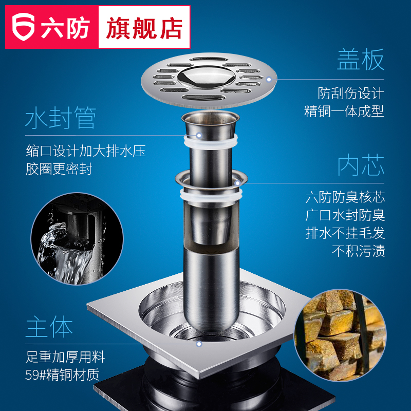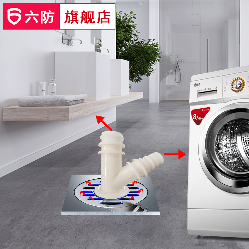 Six-proof three-way floor drain multi-purpose dual-use floor drain balcony Makeup Room Washing Machine Washbasin Multifunction Deodorant Floor Drain