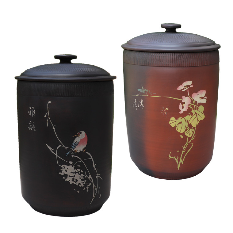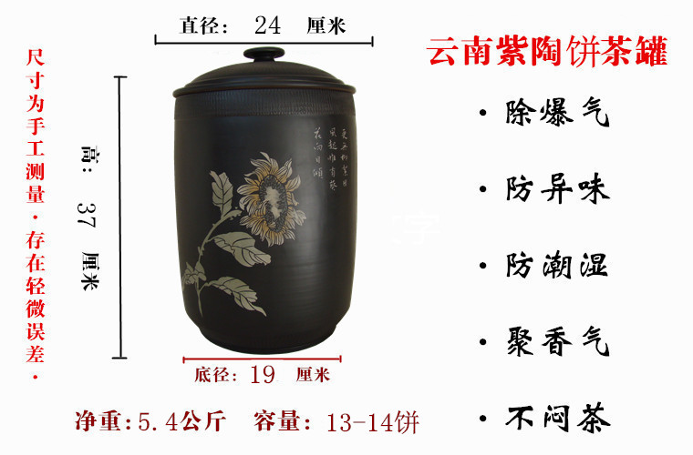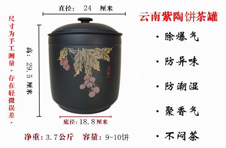 Yunnan Jianshui Purple Pottery Tea Set Storage Tea Pot Large Number Tea Leaf Jar Black Pottery Tea Cake Vat Pan Chaokai 9-13 Cake Storage Tea Vat