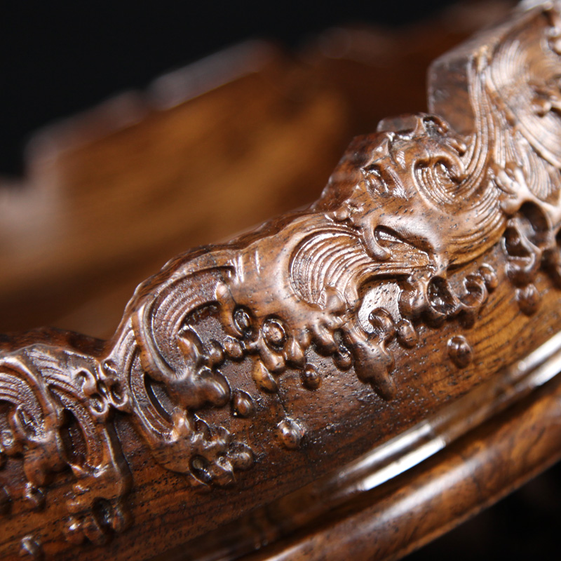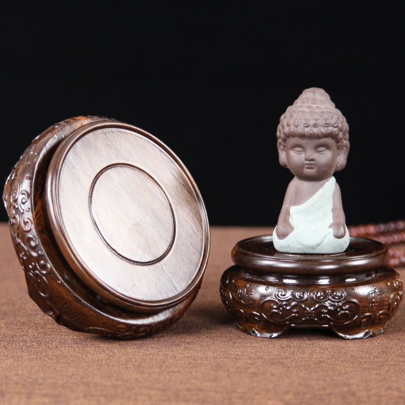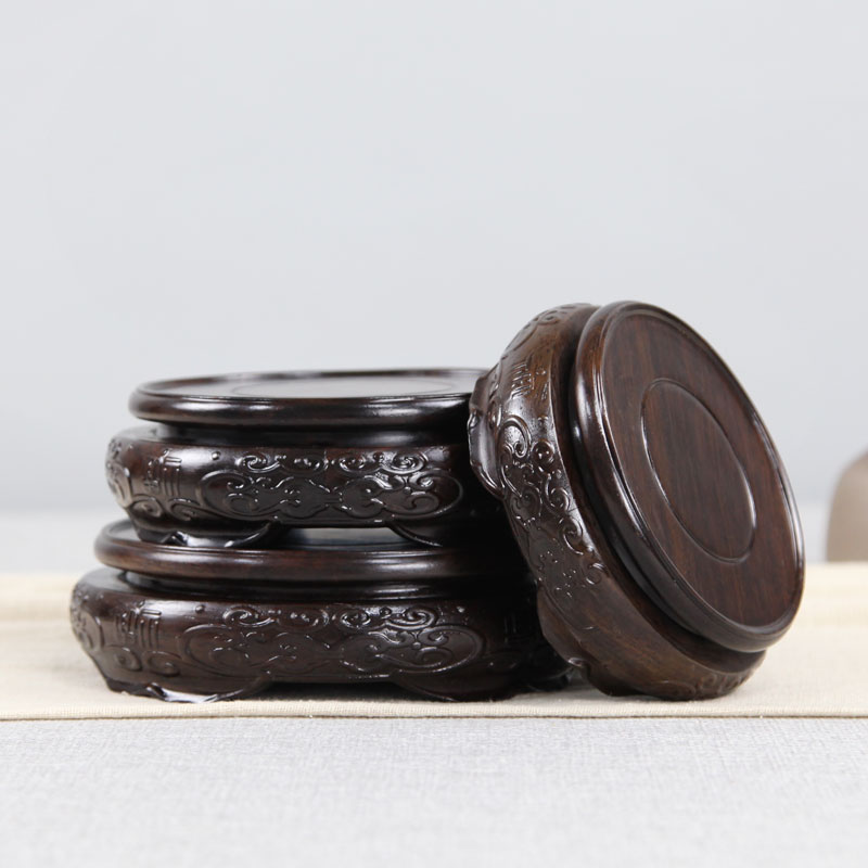 Mahogany handicraft ornaments wood carving base solid wood ebony round base stone vase flowerpot base wooden support