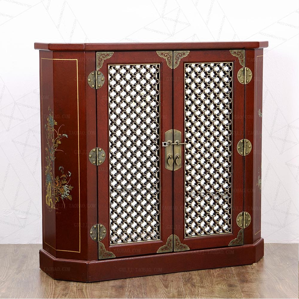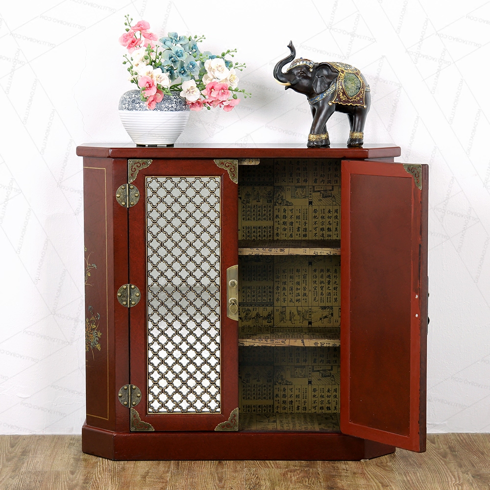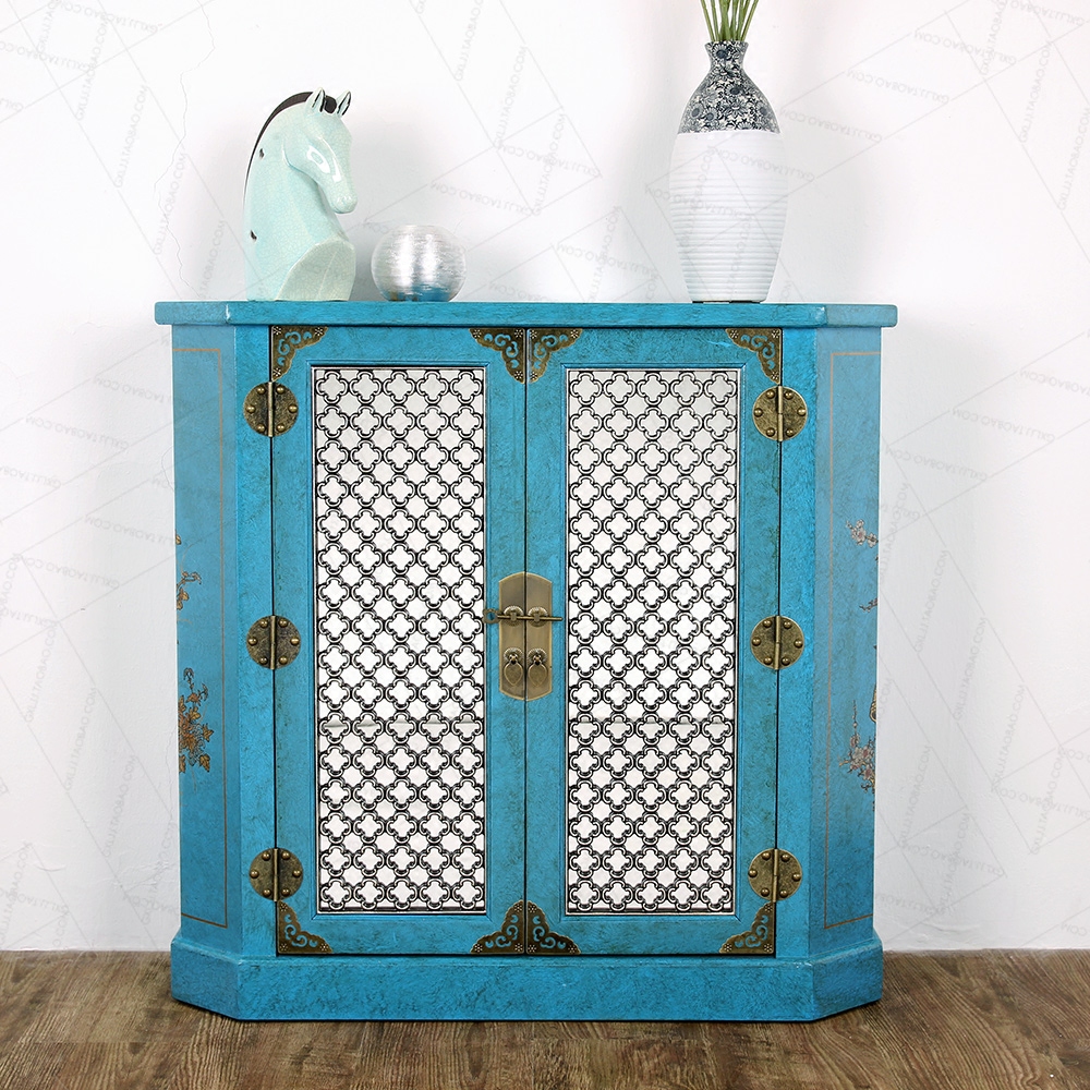 Blue Hall Cabinet New Chinese furniture frontier cabinet floor depiction mirror Mediterranean Old Neoclassical