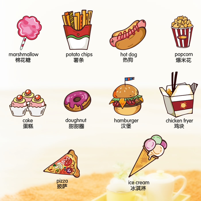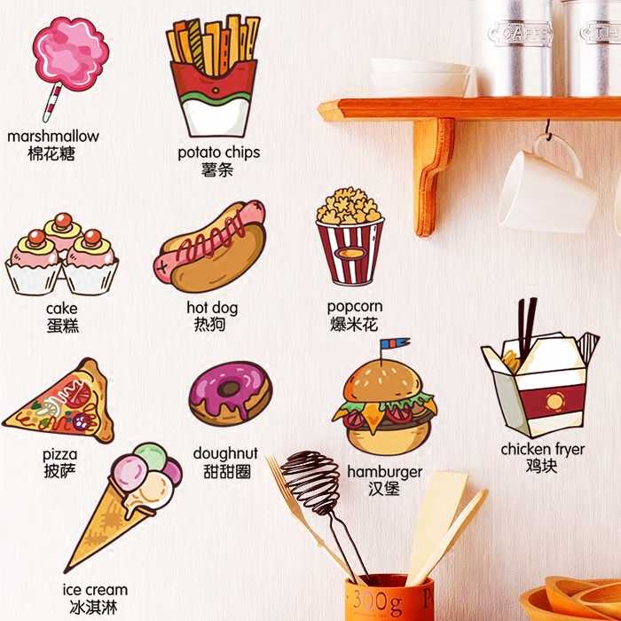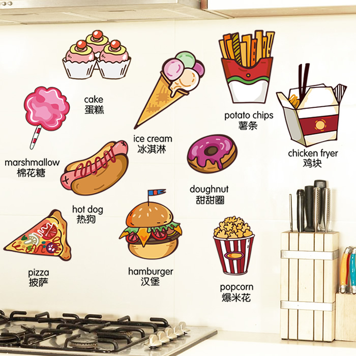 Wall Sticker Pizza Donuts Creative Cartoon Overall Cupboard Kitchen Trim Fridge Dining Room Glass Wall Stickers Decorations
