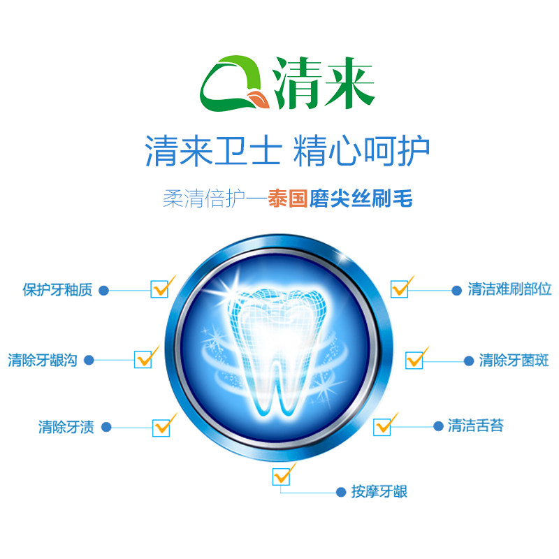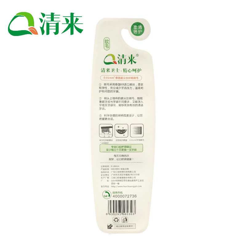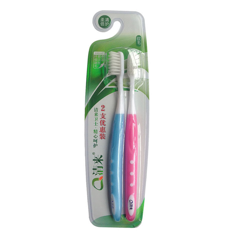 Qinglai soft Qing double care soft bristle toothbrush 0 01mm fine hair antibacterial adult household double family pack