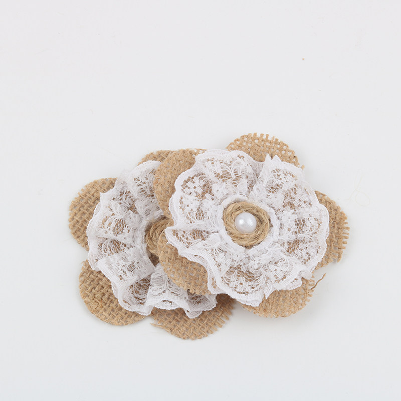 Handcrafted Coarse Hemp Cloth Rose Flowers and America Hot Pin Wedding Party Hemp Cloth DIY Ornament Pearl Lace Flowers