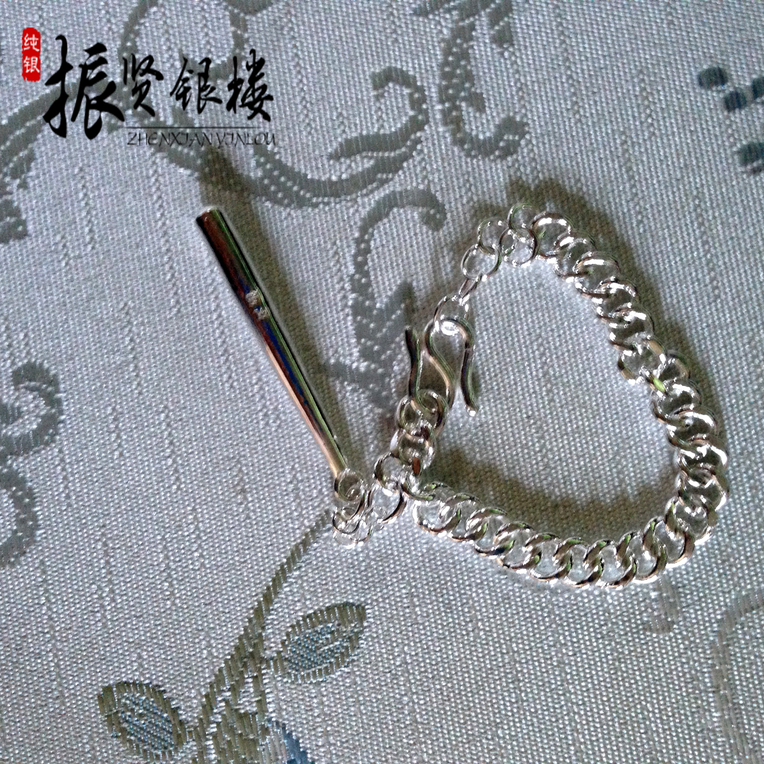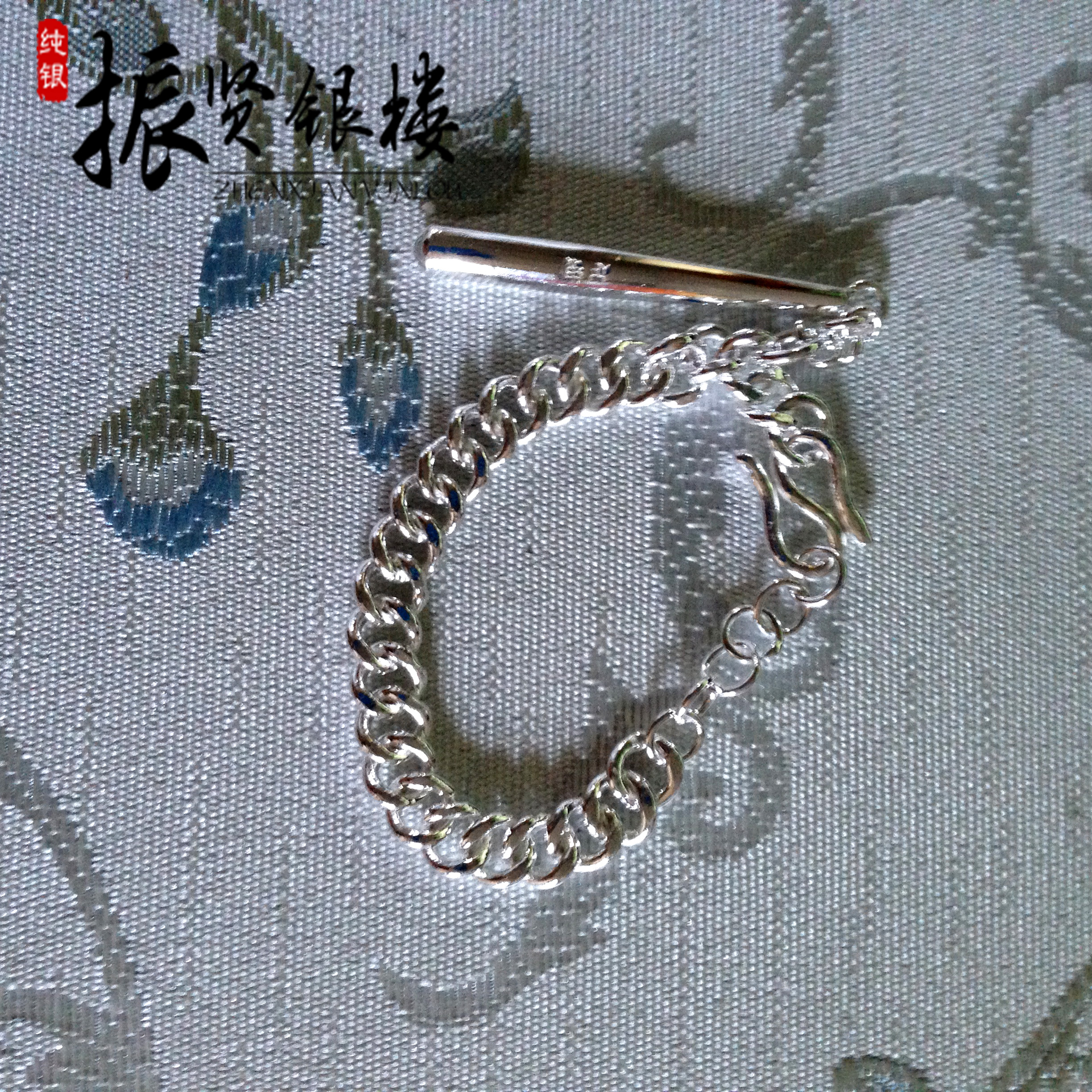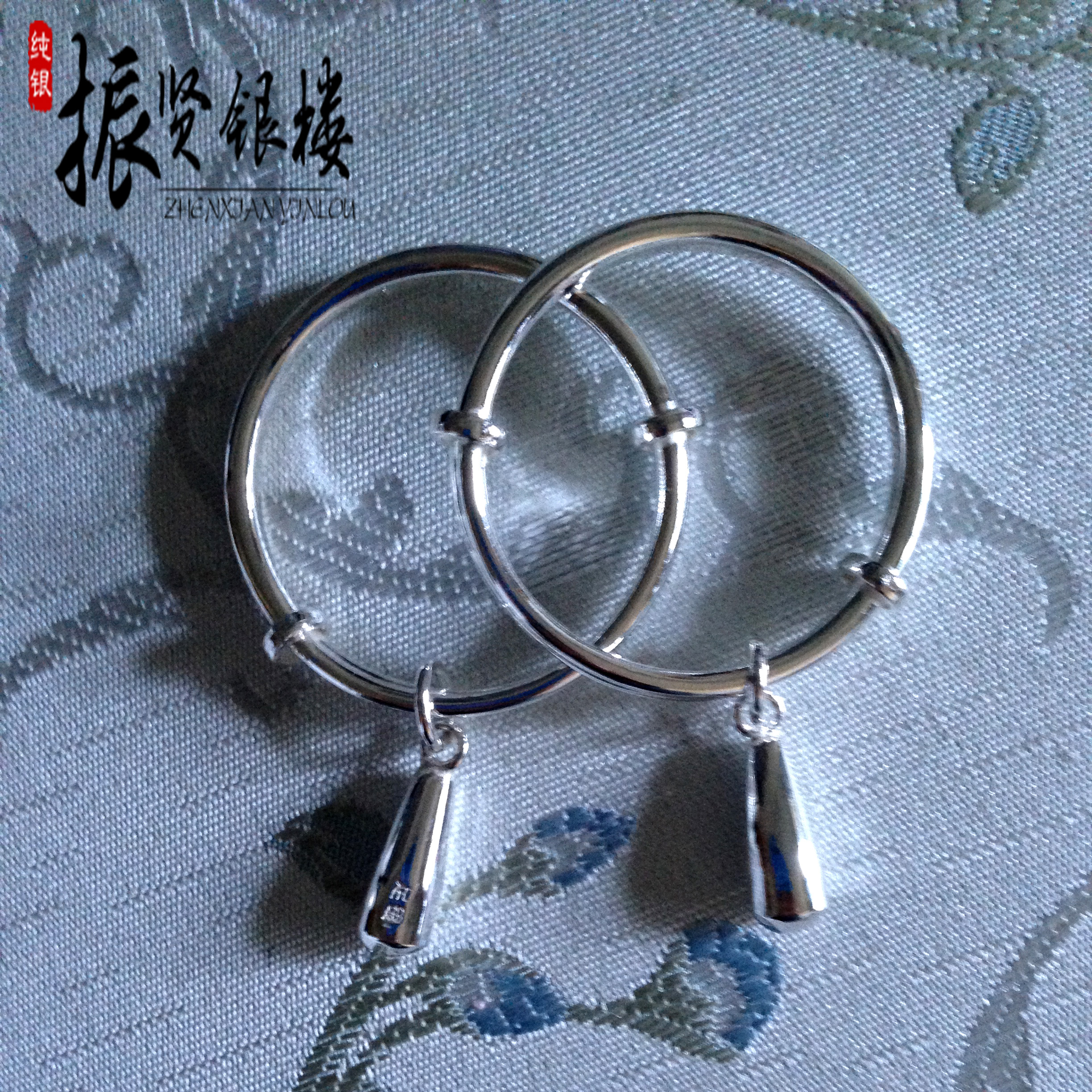 Zhenxian silver building 9999 pure silver grinding tooth stick pendant children's foot silver bracelet round bar loach back winding silk pushing circle round button