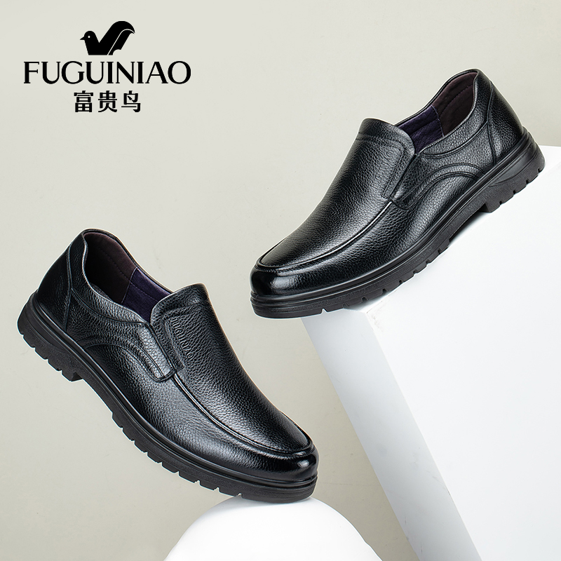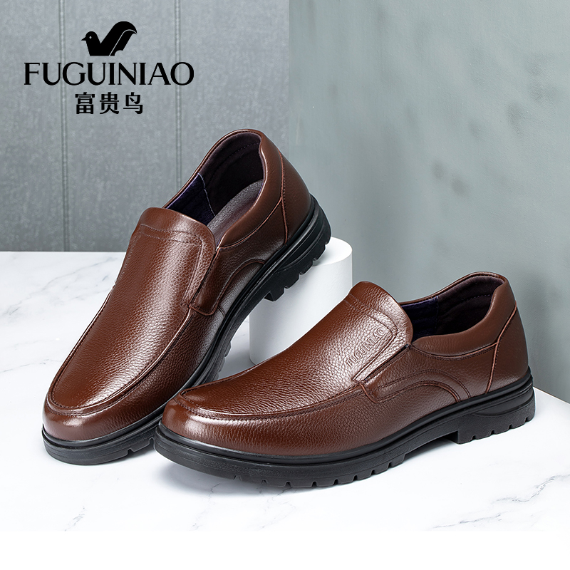 Fugui bird men's shoes spring a foot pedal leather shoes man leather round head middle aged dad shoes men's business casual shoes