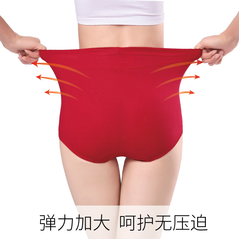 Spring Weaving Mother's Big Size Red Lycra High and Wide Waist Double Belly Button Pants for Middle-aged and Elderly 200kg