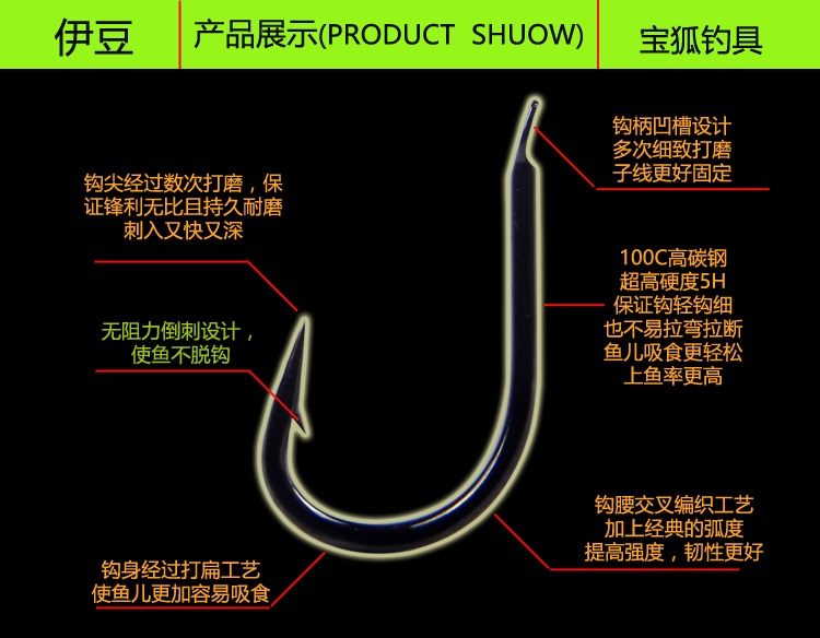 Baofox Izu fish hook Japanese import crooked mouth with barb without thorn in bulk fishing hook crucian carp hook high carbon steel