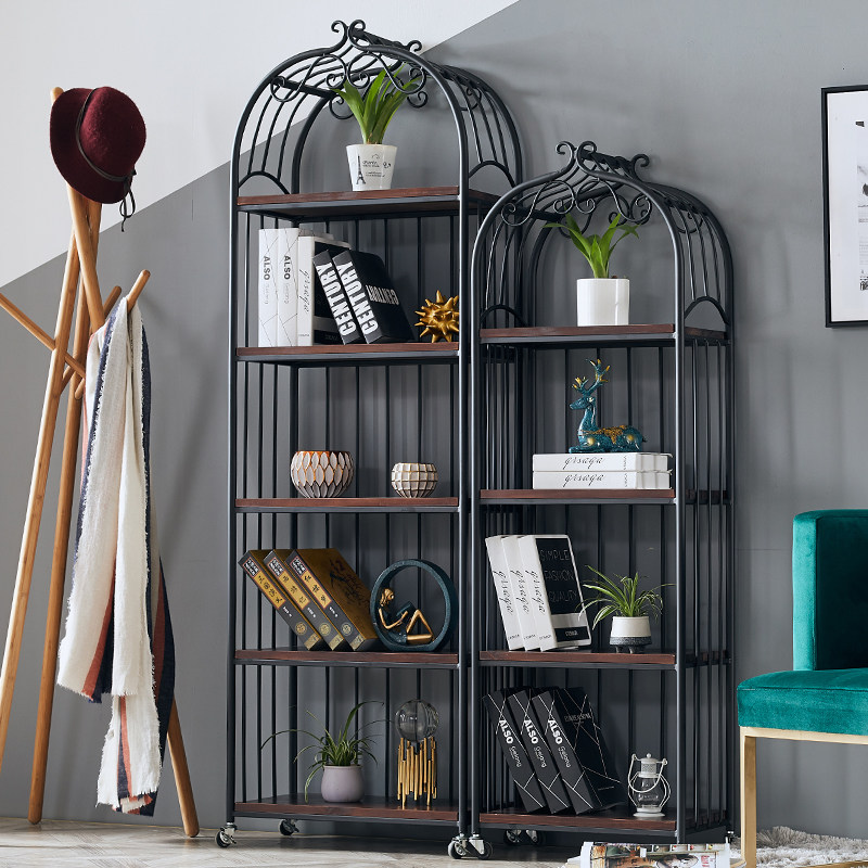 Nordic Wrought iron floor flower stand Solid wood book and newspaper stand Living room shelf Bedroom decoration rack Multi-layer bird cage shelf