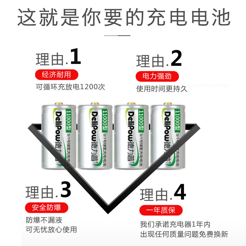 Delip 1 battery charger sleeve fitted with 4 Festival 11000 mAh 1 D-type rechargeable battery water heater