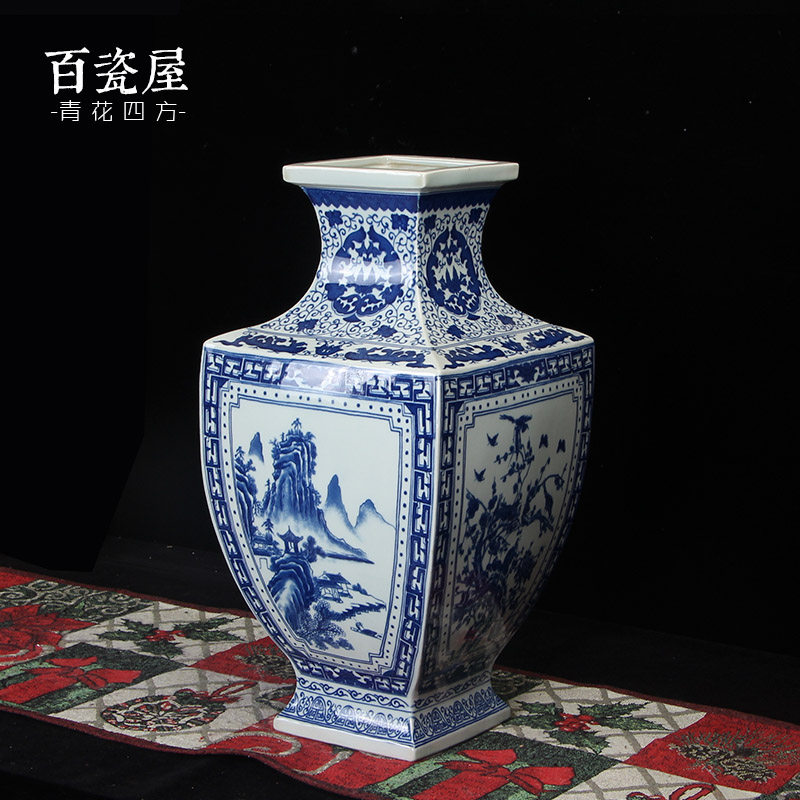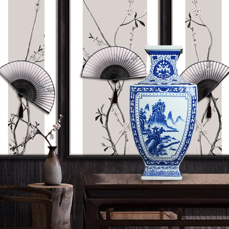 Ming and Qing classical ceramic large vase ornaments new Chinese antique square living room porch Bogu shelf decoration craft gift ornaments