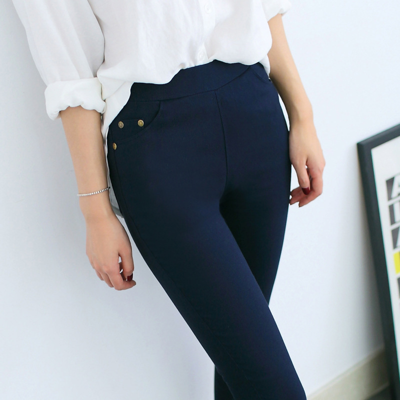 2017 autumn new plus fat plus size women's fat mm pocket slimming nine-point pants 200 catties bottoming long pants