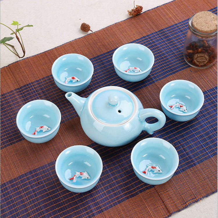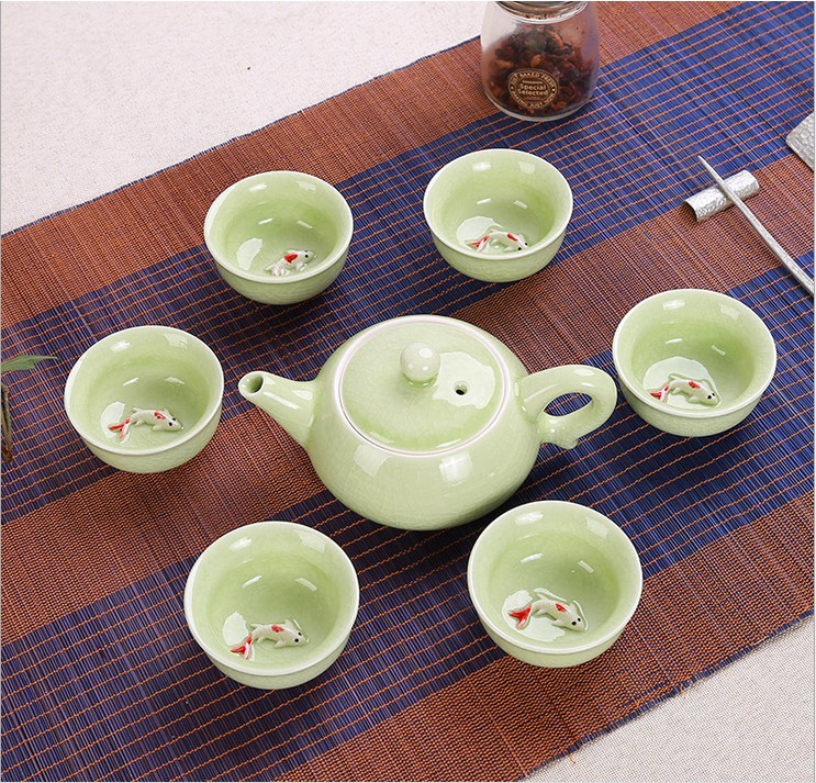 7 celadon fish Cup Tea Set 7 brother kiln fish Cup Blue 7 brother kiln fish Cup white 7 brother kiln fish Cup white 7 brother kiln fish Cup light green
