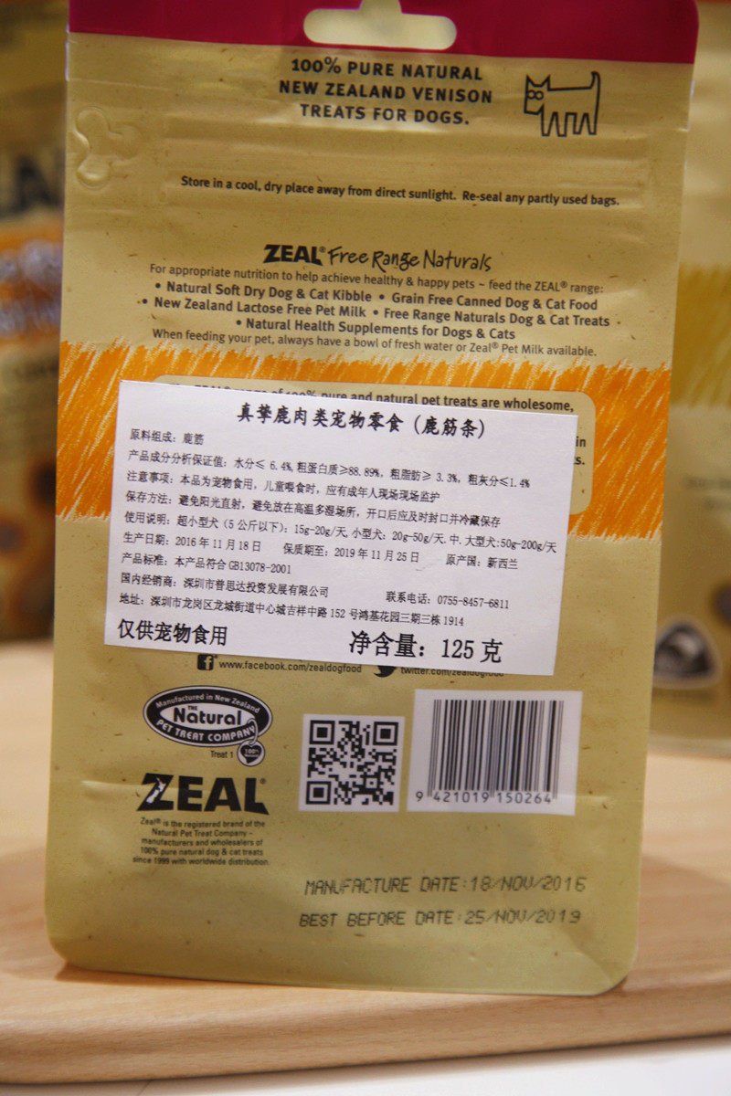 Pure natural New Zealand zeal の deer tendon strips pet snacks dog snacks grinding teeth cleaning teeth resistant to bite 125g