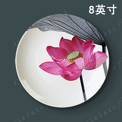 8 Inches Lotus Ceramic Plate Office Dining Room Dining Room Bedroom Background Wall Face Wall Wall-mounted Disc Decoration Pendulum