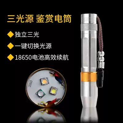 White yellow purple three light source switching dimming light jade lamp flashlight strong light 365nm purple light professional identification highlight