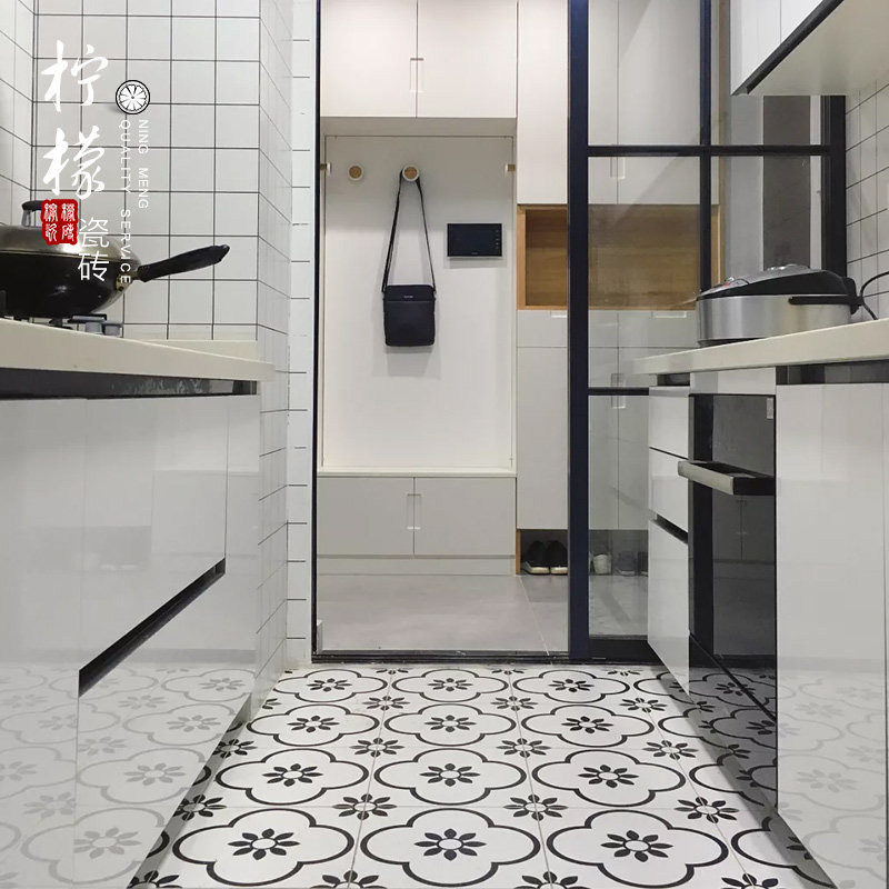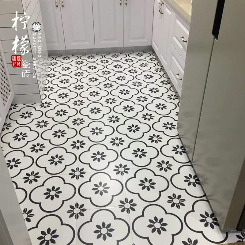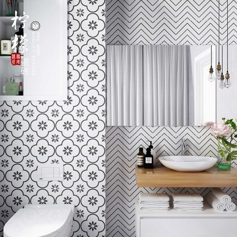 North European and American style black and white tiles bathroom floor tiles tiles black and white bricks wall tiles 300 flower tiles