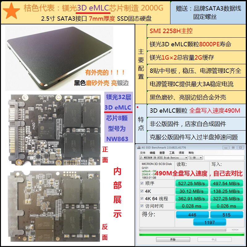Reengraving BX300 Magnesium light 3D MLC MLC particle manufacturing 1T 2T SATA3 2 5 inch SSD Solid State hard disc