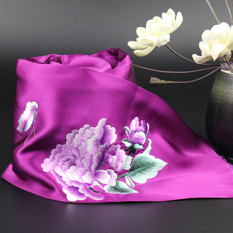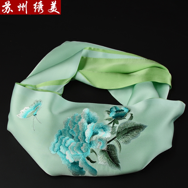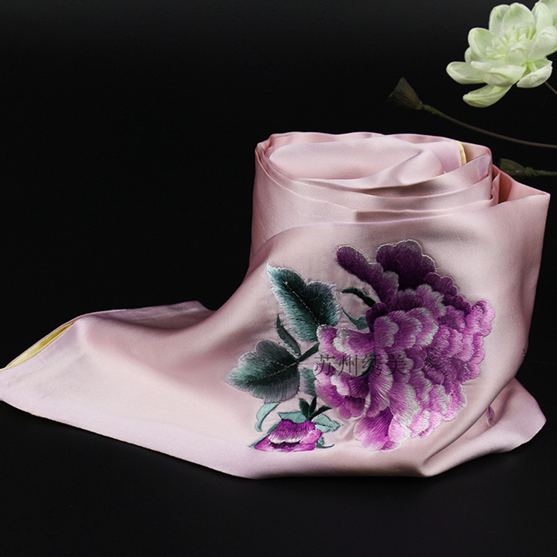 Su embroidered silk scarf Silk scarf autumn female long version embroidery national style hand embroidery features abroad gifts