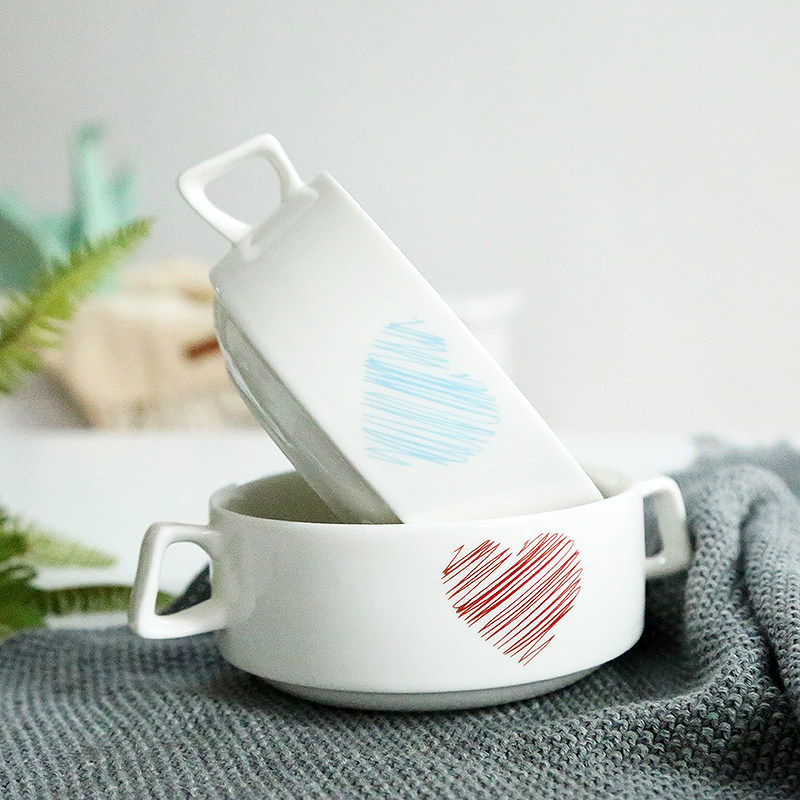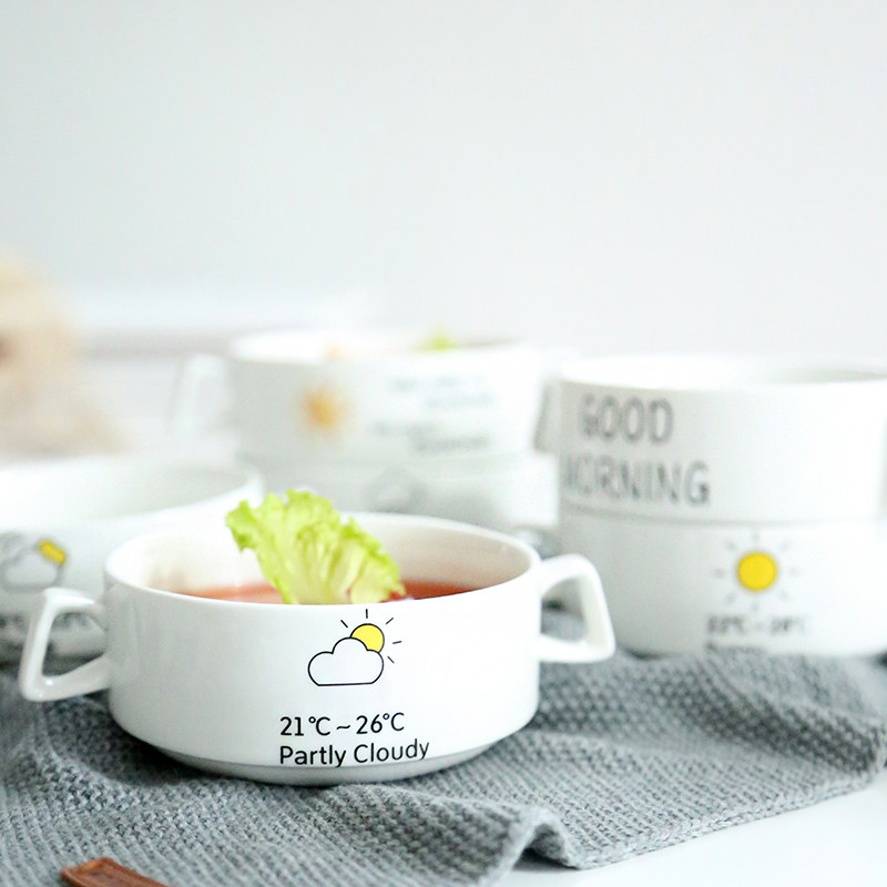 Creative ceramic binaural bowl cartoon children's breakfast steamed egg bowl salad pudding dessert bowl soup bowl binaural soup cup