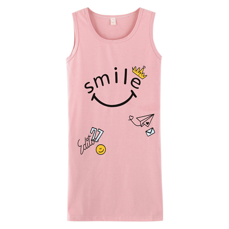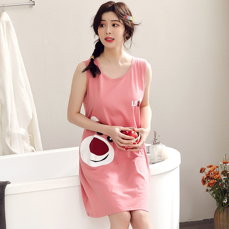 Sleeping Skirt Girl Summer Pure Cotton Korean Version Cute Student Vest Harness Large Size Loose Summer Fresh Sleeveless Sleepwear