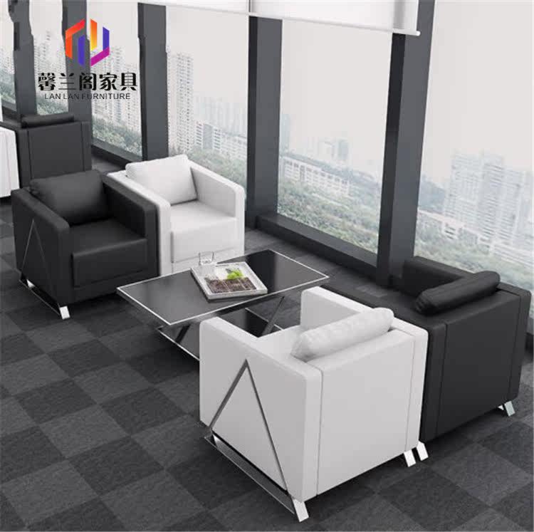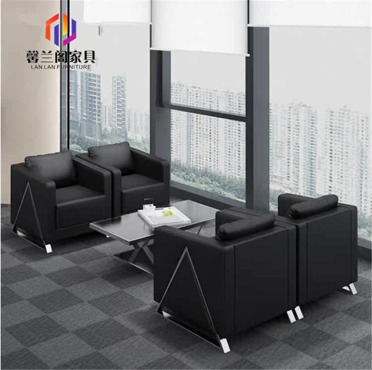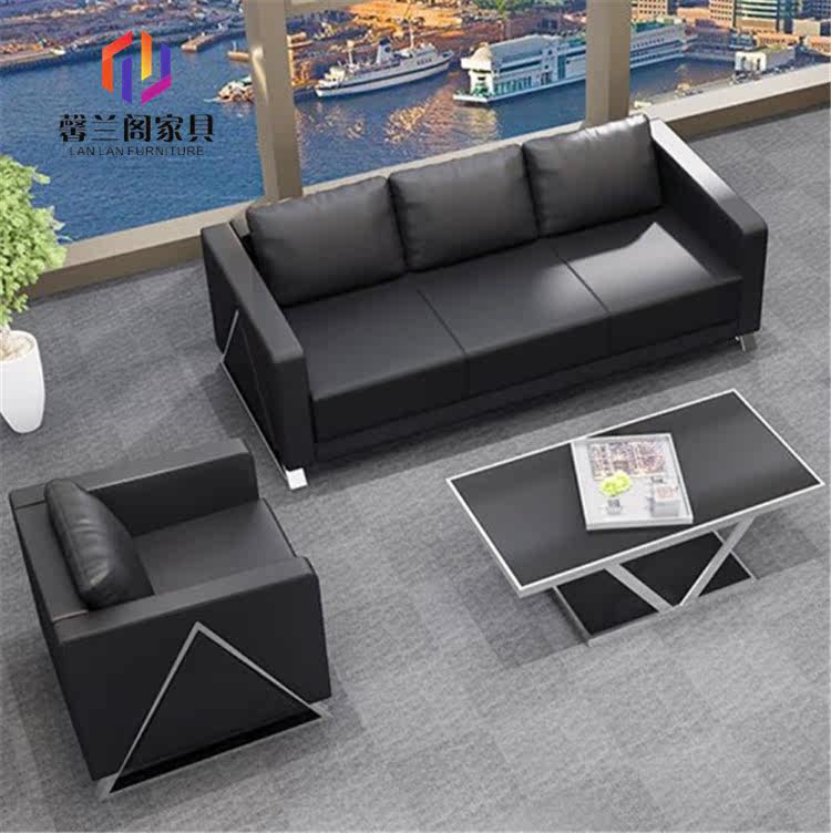 Real Leather Office Sofa Tea Table Combination Brief Modern Business Office Sofa Reception Guest Trio Innate