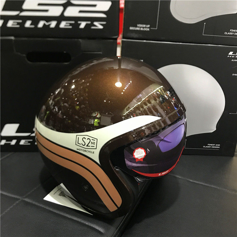 LS2 half armor locomotive safety helmet male and female four-season universal summer helmet Haaretson inner mirror electroplating retro armor OF599