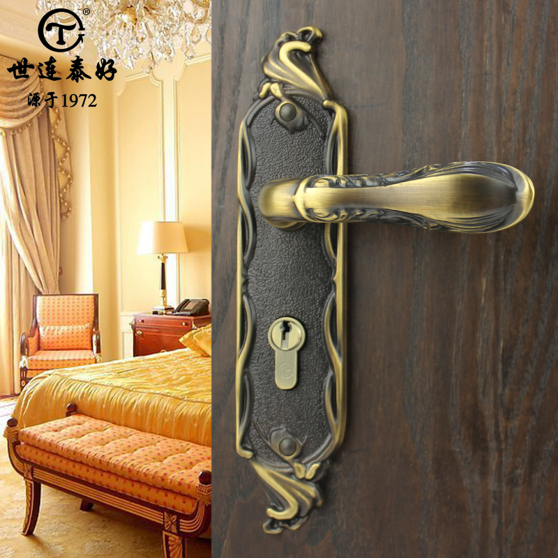 Shilingtai Good Door Lock All copper room bedroom door European type retro-pure copper solid wooden door room silent door lock handle