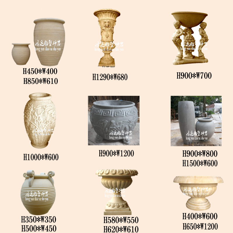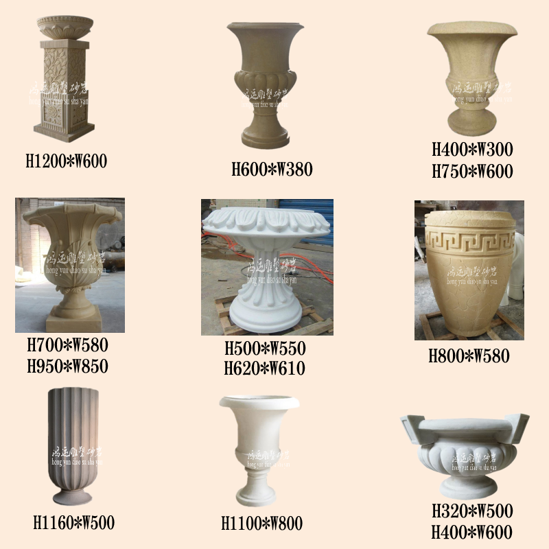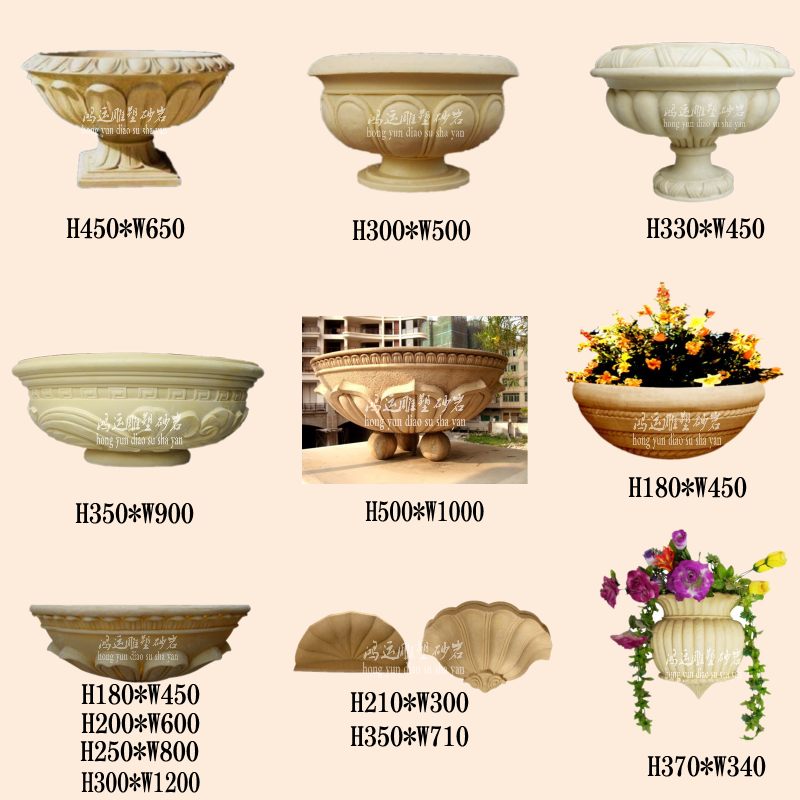 Artificial sandstone relief flowerpot FRP outdoor landscape urban garden architectural decoration material column pier Flower Bowl