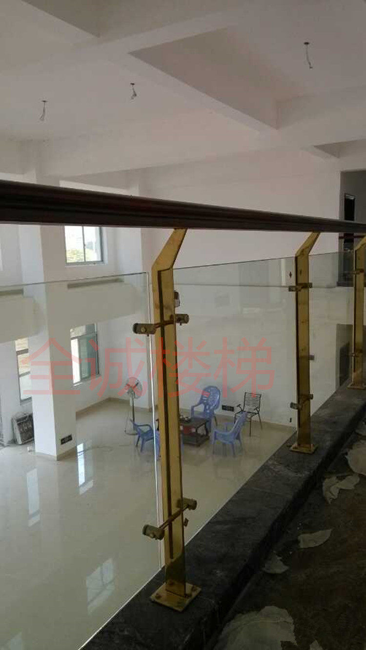 Jianding Ding Stainless Steel Staircase Fence Stainless Steel Engineering Titanium-plated Gold Prism Hanging Glass Column