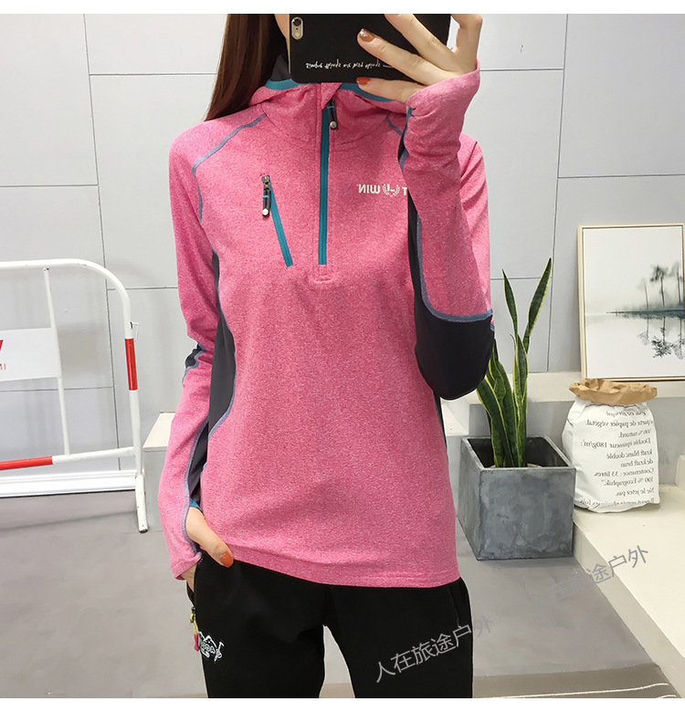 Quick-drying T-shirt women's long-sleeved hooded suit autumn thick outdoor sports women's velvet sweater hiking clothing