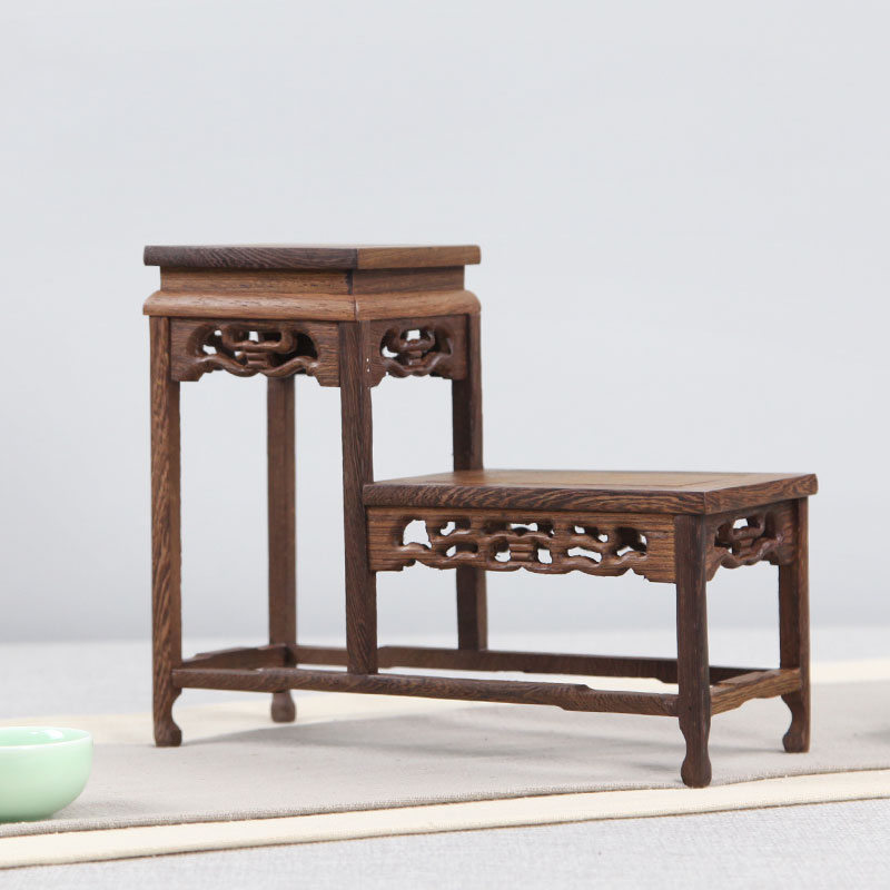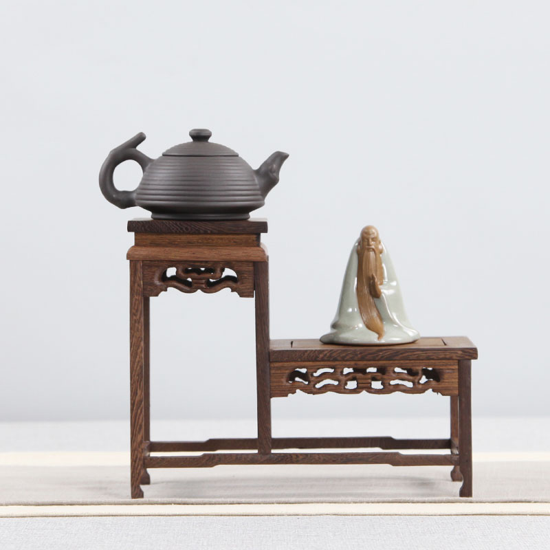Mahogany purple sand pot shelf Tea set rack Small Bogu rack shelf Chicken wing wood solid wood high and low small multi-treasure pavilion base